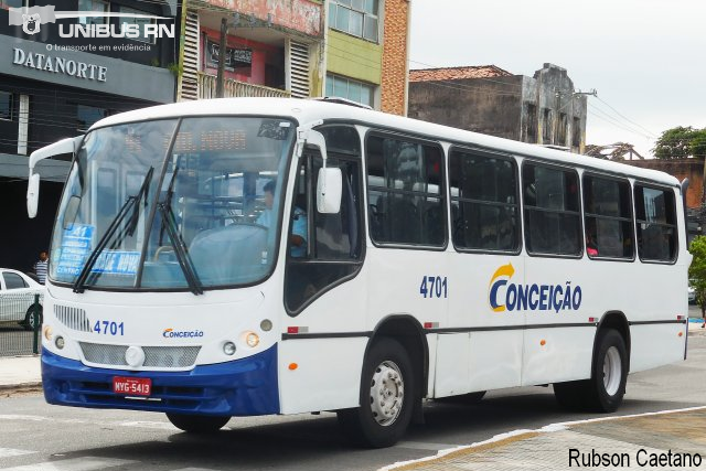 A empresa Conceição segue reformando seus veículos a todo vapor. Cada vez mais veículos perde a logomarca antiga, com saias pintadas de azul, e ganham o padrão visual baseado na empresa Trampolim da Vitória – integrante do mesmo grupo empresarial e que inaugurou o conceito da pintura – que mantém os para-choques azuis e as laterais brancas. Nesta semana, foram flagrados os carros 4701 e 4003, modelos Spectrum e Svelto, ambos de chassis Mercedes-Benz OF 1418.