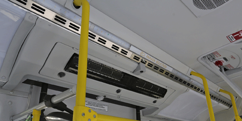 Para aplicações urbanas, devido a elevada frequência de abertura e fechamento de portas, dá-se necessário a instalação de “cortinas de ar”, para que o jato de ar minimiza qualquer interferência térmica com o exterior e consequentemente, trocas térmicas indesejáveis, visando à integridade do sistema. A ausência do dispositivo fará com que o compressor passe a trabalhar mais, para tentar manter o ar refrigerado dentro do veículo. Pode parecer meio obvio isso, mas a cortina de ar auxilia na eficiência do ar condicionado, para veículos urbanos. Além disso, objetivando maior conforto térmico e integridade do sistema, fabricantes instalam ar condicionado, em urbano, capacidade elevada, mas condizente com a capacidade do motor, devido as consideráveis trocas térmicas diretas, por conta das constantes paradas que um ônibus urbano faz.