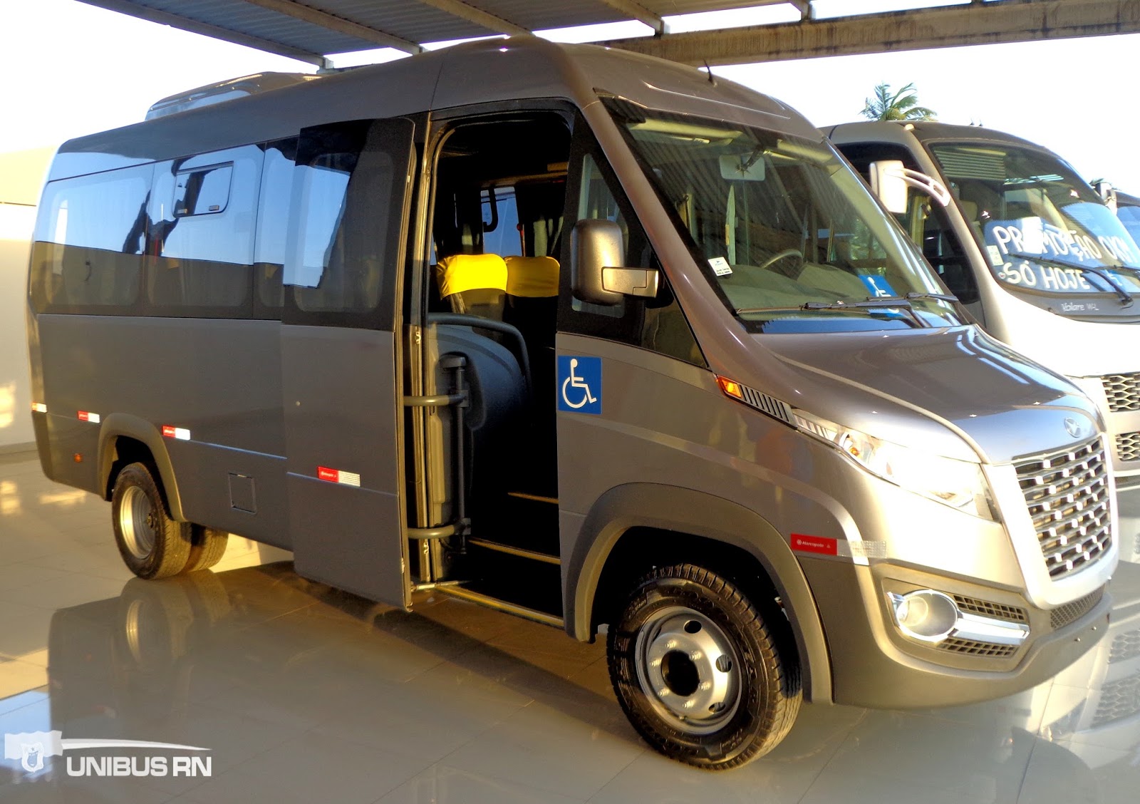 A porta pantográfica com abertura e fechamento automáticos, via controle remoto, é outra característica importante e fundamental do Volare Cinco. De dimensões maiores, proporciona facilidade de acesso e comodidade. Com o primeiro degrau a apenas 38 cm de altura em relação ao solo, a escada de acesso ao interior é a mais baixa entre as de todos os modelos disponíveis no mercado (entre vans e ônibus).”, diz a Volare em nota.