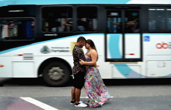 “Eu tinha feito essa proposta num ensaio de um outro casal. No caso da Valeska e do Douglas, estava vindo um ônibus e surgiu a ideia de repetir a foto, porque era um ensaio mais urbano. Eles topavam tudo”, conta o profissional responsável pela cena.
