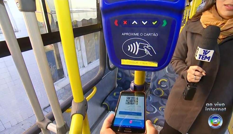 Passageiros de ônibus de Sorocaba (SP) podem comprar bilhete unitário no cartão de crédito — Foto: Reprodução/TV TEM |